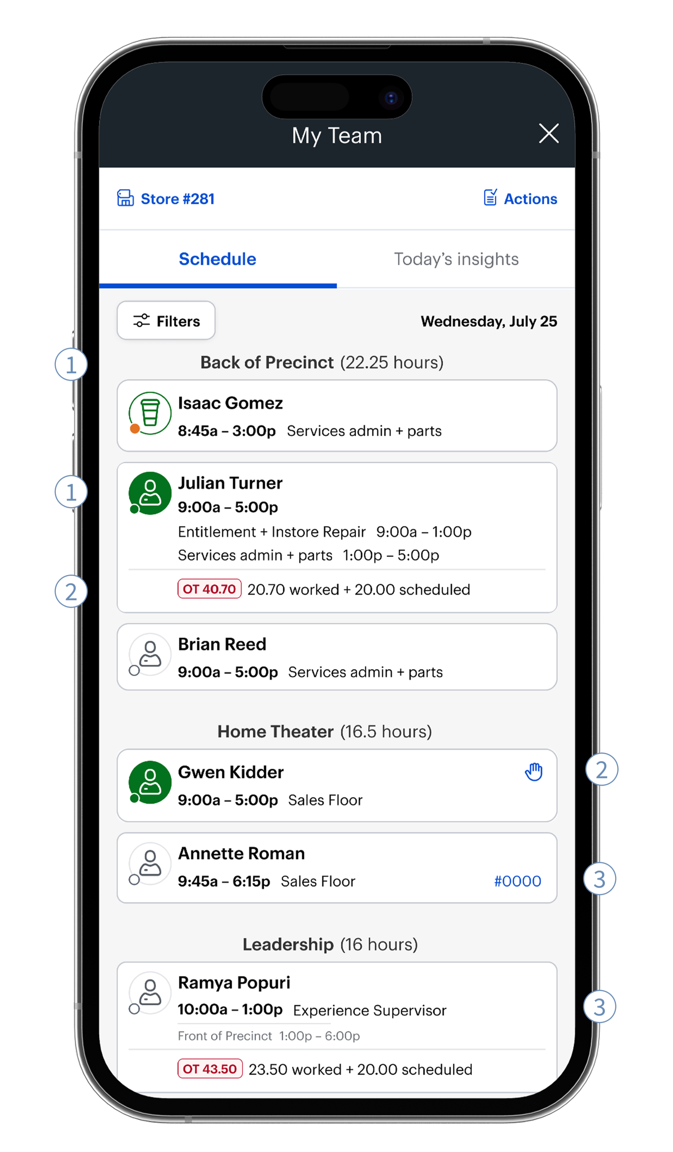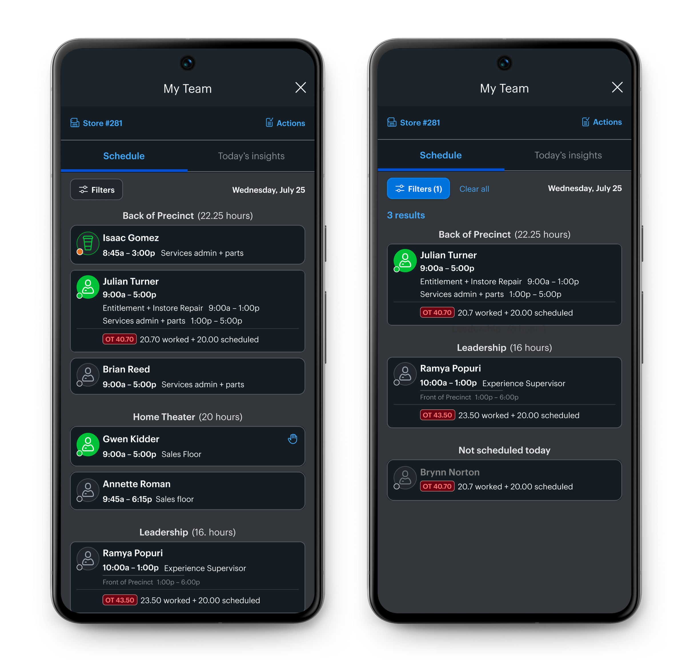 Retail store managers are responsible for teams that can range from 20 to 100 employees, depending on the season. To manage labor effectively, leaders need to know who is working, who is scheduled, and who is approaching overtime.